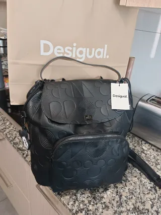 Versátil mochila-bolso de la marca Desigual, perfecta para el día a día. - Combinación de colores negro y verde militar. - Múltiples compartimentos y bolsillos. - Correas ajustables para llevar como mochila o bolso. Se realizan envios, contacyo mediante wallapop, tel, whassap,...