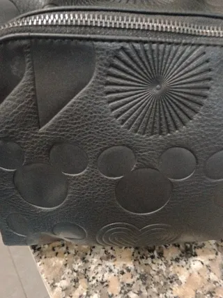 Mochila Desigual con diseño de Mickey Mouse, ideal para añadir un toque divertido a tu estilo. - Confeccionada en tejido vaquero y detalles en piel sintética. - Adornada con tachuelas plateadas. - Cierre de cremallera. - Incluye etiqueta.
