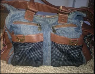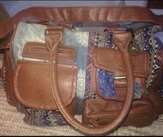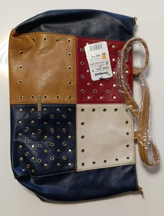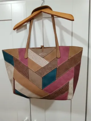 Bolso reversible de la marca Desigual con un diseño patchwork muy original. Está peor por la parte marrón. - Combinación de texturas y colores. - Asas cómodas para llevar al hombro.