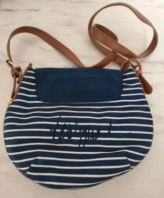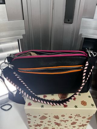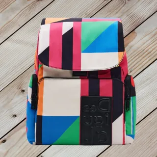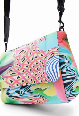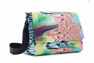 Bolso de la marca Desigual con un diseño vibrante y llamativo. - Combinación de colores vivos en franjas. - Acabado texturizado en la solapa y laterales. - Incluye correa ajustable para llevar al hombro o cruzado.