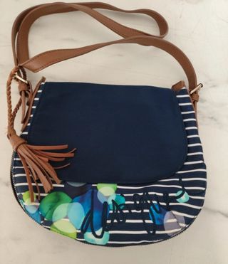 Bandolera de la marca Desigual con un diseño llamativo. - Cierre de solapa. - Correa ajustable. - Detalle de flecos. - Estampado floral y rayas.