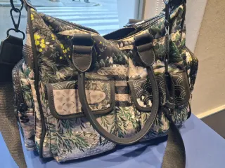 Bolso con un estampado vibrante y detallado. - Diseño con múltiples compartimentos. - Asas cómodas para llevar. - Cierre de cremallera.