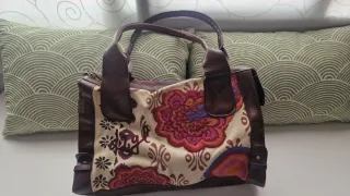 Bolso Desigual con un diseño vibrante y llamativo.Tiene las asas y parte superior de piel/ cuero, por lo que no pelara Muy buen estado - Combinación de lona y piel. - Estampado multicolor con detalles únicos.
