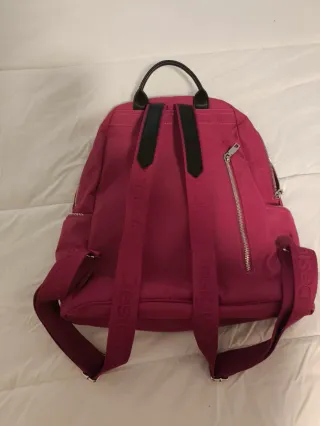 PRECIO NO NEGOCIABLE Mochila rosa fucsia grande con múltiples bolsillos exteriores, cierre de cremallera con compartimento para el ordenador y bolsillo interior. Asas regulables y reforzadas Color: Rosa fucsia Medidas aprox.: 33x15x38,5 cm Se vende por falta de uso No me interesa intercambios PRECIO NO NEGOCIABLE