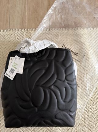 Mochila Desigual en color negro, completamente nueva y con sus etiquetas originales. - Diseño con relieve floral. - Cierre principal. - Asa superior. - Correas ajustables.