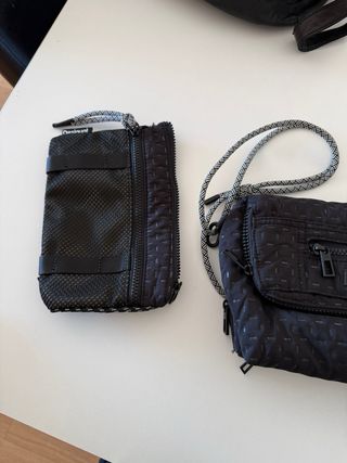 Bolso bandolera para móvil y bolsillo tarjetero. Por detrás tiene otro bolsillo de rejilla. Pongo medidas. Móvil máx 15-16 cm de largo. Uno por 23€ y los dos por 40€ Se pueden ver en tienda para probar.