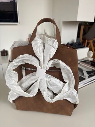 Bolso de ante con un diseño llamativo y original. Nunca usado