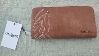 Billetera de la marca Desigual con un diseño moderno y elegante. Tiene unas marcas de peladura - Material con textura. - Cierre de cremallera. - Logo de la marca en relieve.
