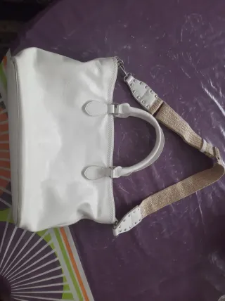 Bolso de mano o bandolera con un diseño moderno y práctico.Solo le falta una tira negra, ver foto. - Compartimento principal con cremallera. - Bolsillo frontal con cremallera. - Correa ajustable y desmontable. - Detalle de logo en relieve.