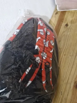 Mochila roja y negra con dibujos