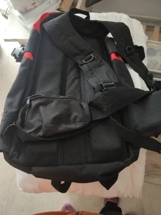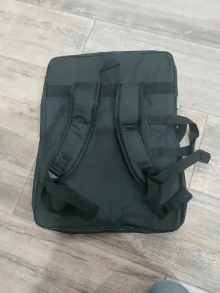 Mochila con diseño futurista y pantallas LED. Con una power bank (no incluida) y la app se pueden cambiar los dibujos de la pantalla y escribir mensajes que van apareciendo. Tiene en el interior un conector para USB para conectar la batería y un botón exterior. - Diseño geométrico con color tipo fibra de carbono negro. - Ajustable con varias tiras y agarres. - Almohadillas en espalda, muy cómoda. - Gran tamaño 50x35x20cm haciendo estos últimos 20cm más grandes abriendo una de las cremalleras, cabe el casco de sobra. - Nueva a estrenar, en su bolsa y cajas originales.