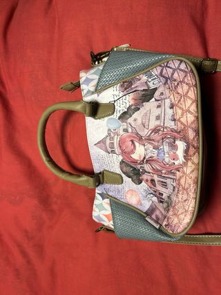 Bolso de la marca Anneke con un diseño único y llamativo. - Estampado frontal con dibujos de cactus y una chica tocando la guitarra. - Detalles en dorado y plateado. - Tira ajustable para llevar al hombro.