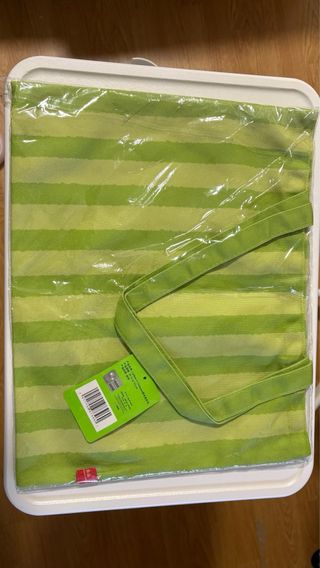 Bolso con un diseño encantador y rayas verdes. - Presenta tres adorables personajes. - Cada personaje sostiene un objeto verde.
