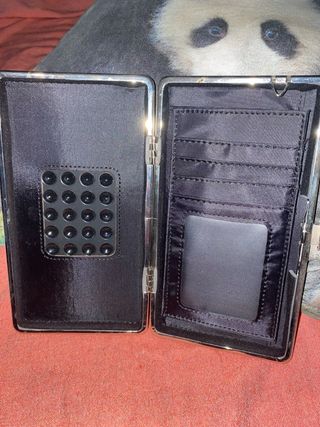 Bolso para móvil con un bonito diseño,como nuevo, está en perfecto estado - Tarjetero doble - Cierre de cremallera. - Adorno de hojas metálicas. - Correa para colgar.