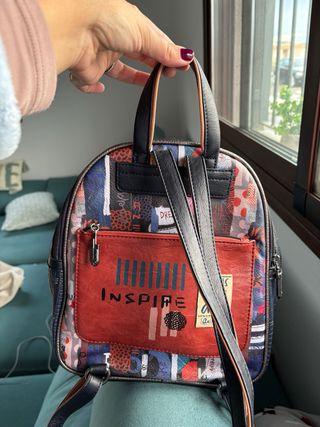 Mochila de la marca Anekke con un diseño único y colorido. - Cierre principal con cremallera. - Bolsillo frontal con cremallera. - Asa superior. - Correas ajustables para los hombros. - Detalle de dibujo frontal.