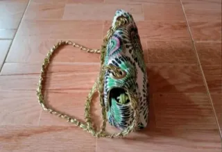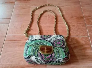 LEER DESCRIPCIÓN! 👇 Bolso color con variedad de tonalidades verdes dibujando plumas de PAVO REAL 🦚 (color fiel a las fotos del anuncio) MUY DIFÍCIL de CONSEGUIR! Muy combinable! es de TELA SEMI-ACOLCHADA y poliéster. Con correa regulable metalizada dorada y verde a juego con el bolso. Cierra por cremallera y por broche color dorado en la solapa. Aparte de original,es llamativo y DIFÍCIL DE COINCIDIR con otro igual ya que es muy complicado conseguirlo! Medidas aprox:Largo 21cm. Ancho 13cm. Para ver fotos, ampliar las imágenes del anuncio. NO NEGOCIABLE.