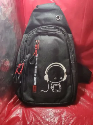 Mochila bandolera con un divertido diseño. - Estampado de personaje con auriculares. - Correa ajustable. - Cierre de cremallera.