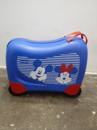 Maleta infantil con diseño de Mickey y Minnie Mouse. - Ruedas para facilitar el transporte. - Asa superior para llevarla. - Decoración con personajes Disney.