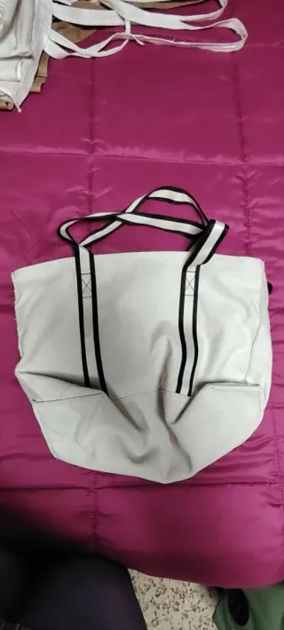 Nunca usado quitada la eriqueta y guardado. 40cm de ancho x 28cm de alto. Contiene un bolsillo interior y dos exteriores. Asas para mano y corredera para hombro