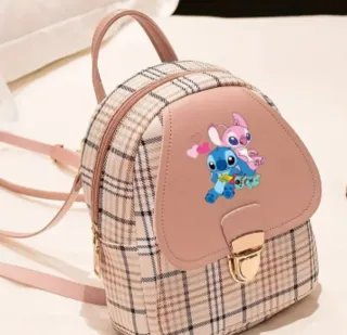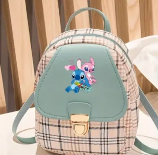 Adorable mochila con diseño de Stich y Ángel. - Estampado a cuadros. - Detalle de los personajes de Disney. - Cierre de solapa con broche dorado. Varios colores promo hasta el 10 de diciembre 2° unidad al 50%