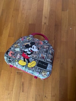 Conjunto de maleta de cabina y neceser con diseño de Mickey Mouse. El neceser tiene un asa rota. Tambien vendo por separado. Maleta 65 € y neceser 15€. La maleta está impecable