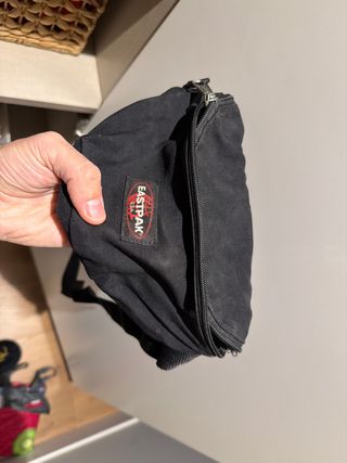 Riñonera Eastpak de color negro. Cuenta con un compartimento principal y otro detrás. Muy amplia.