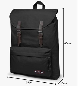Mochila Eastpak modelo London en color negro. - Cierre con hebillas y cordón. - Bolsillo frontal con cremallera. - Correas de hombro ajustables. - Asa superior. - Logo de la marca en el bolsillo frontal.