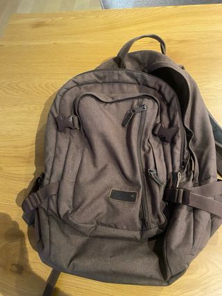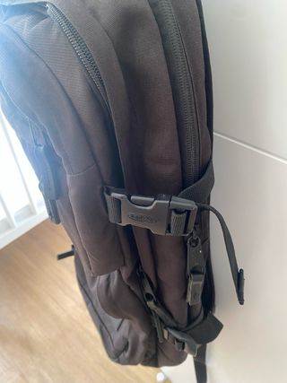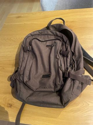 Mochila de la marca Eastpak en color marrón. Cuenta con varios compartimentos y cierres de clip. - Compartimento principal espacioso. - Bolsillo frontal con cremallera. - Correas ajustables para los hombros. - Asa superior para colgar.