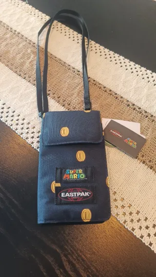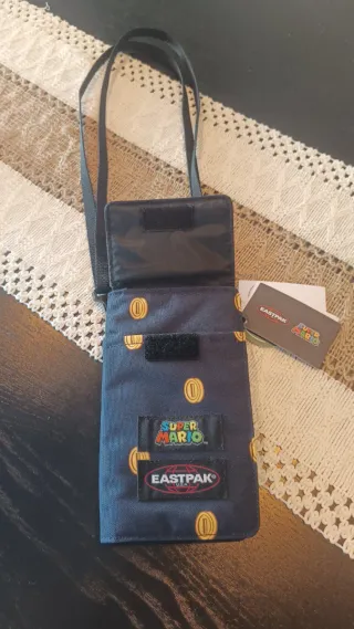 Práctico bolsito Eastpak con un divertido diseño de Super Mario y monedas. - Estampado de monedas doradas. - Cierre con velcro en la solapa principal. - Correa ajustable para llevar al hombro o cruzado. - Compartimento interior.
