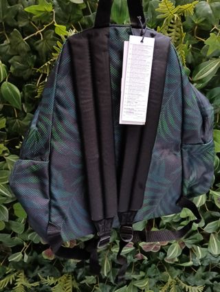 Mochila con un llamativo estampado de hojas en tonos verdes y azules. Perfecta para el día a día. - Diseño con estampado botánico. - Compartimento frontal con cremallera.