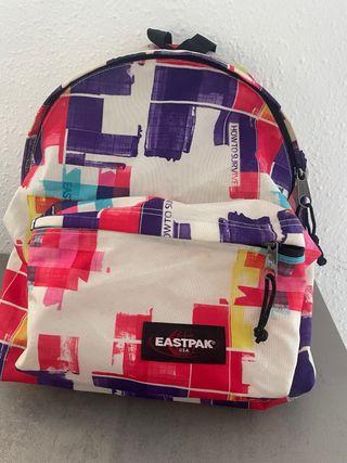 Mochila Eastpak con un diseño vibrante y llamativo. - Estampado abstracto en múltiples colores. - Compartimento principal espacioso. - Bolsillo frontal con cremallera.