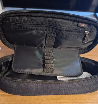 Práctico bolsito Eastpak de color negro, ideal para llevar tus esenciales. - Correa ajustable para mayor comodidad. - Cierre de cremallera principal. - Bolsillo exterior con cremallera.