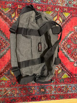 Mochila Eastpak Go Out de 65 litros. - Color negro y gris. - Compartimento principal espacioso. - Correas ajustables - Impermeable - Con bolsillo lateral para la cantimplora, blosillo inferior para el protector de lluvia y bolsillo superior (en la seta) con mucho espacio - Compartimento inferior para zapatos - Compartimento trasero para el portátil, muy cómodo. - Cremalleras muy resistentes. - Cierre rápido, con cuerdecita y clic Nueva en Internet vale 195€. Está en buenas condiciones, aunque tenía un agujero y le cosí un parche impermeable en toda la parte inferior para hacerla más resistente e impermeable. Está perfecta.