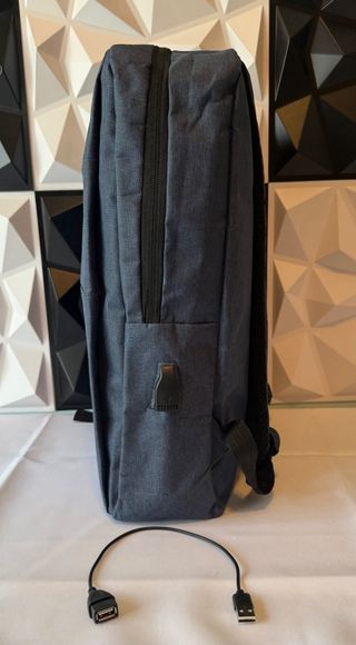 Mochila de oficina en color gris con un diseño cómodo, ligero y resistente para el uso diario. Sus asas están acolchadas y con respaldo ergonómico. El tejido es duradero y fácil de limpiar. Contiene un puerto USB lateral integrado (incluye cable interior) para conectar tu batería externa y cargar el móvil sin abrir la mochila Dispone de un bolsillo frontal horizontal con cremallera prácticos y de acceso rápido. Su interior tiene un espacio para portátil de hasta 16” aproximadamente. La mochila está completamente nueva, sin estrenar.