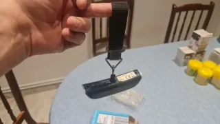 Báscula digital compacta y fácil de usar para pesar tu equipaje. - Pantalla LCD azul. - Función Tara. - Unidades de medida seleccionables (kg/lb). - Diseño ergonómico para un agarre cómodo.