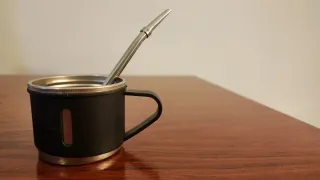 Mate de viaje con diseño moderno y práctico. Incluye bombilla. - Exterior en color negro. - Interior de acero inoxidable. - Asa ergonómica.