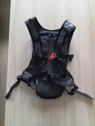 Mochila ligera y funcional para trail running de 6L. Solo falta extensión de la cremallera (foto 3). - Diseño ergonómico para mayor comodidad. - Compartimento principal con cierre de cremallera. - Cuerdas elásticas frontales para ajuste. - Tirantes acolchados y ajustables. - Malla transpirable en la espalda y tirantes.