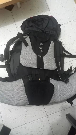 En perfecto estado. Compatible cabina avión, 40 l de capacidad. Espalda ergonómica y súpercompleta (parte superior extensible, bolsillo inferior accesible a parte inferior, bolsillos laterales, enganches y gomas varias, bolsito cintura porta objetos pequeños...). Muy poco uso.