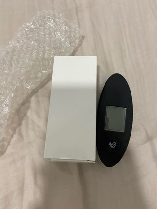 Báscula digital compacta para pesar maletas. Funciona con pila redonda. - Diseño ovalado y ergonómico. - Pantalla LCD. - Botón ON/OFF.