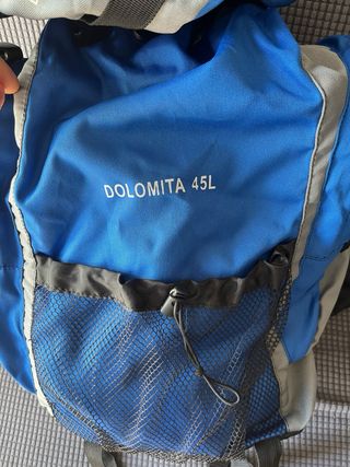 Mochila de senderismo o escolar con una capacidad de 45 litros, ideal para niños. - Compartimento principal espacioso. - Bolsillo frontal con cierre. - Bolsillos laterales de malla. - Correas de hombro ajustables. - Espalda acolchada para mayor comodidad. - Compartimento para saco de dormir.