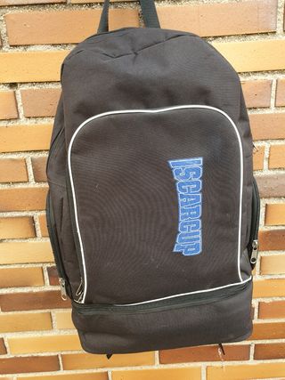 Se vende mochila deportiva ISCAR CUP en buen estado. Características: - Color: negro con detalles en blanco y logo ISCAR CUP en azul. - Compartimento inferior con cremallera para guardar tacos/botas de fútbol, ropa húmeda o accesorios. - Bolsillo principal amplio con cremallera y bolsillo delantero adicional. - Asa superior y correas acolchadas para mayor comodidad. - Material resistente y fácil de limpiar. Estado: - Usada pero bien cuidada, sin roturas ni cremalleras dañadas. - Perfecta para entrenamientos, partidos o uso escolar/deportivo. Entrega: - Entrega en mano en [tu ciudad] o envío bien protegido.