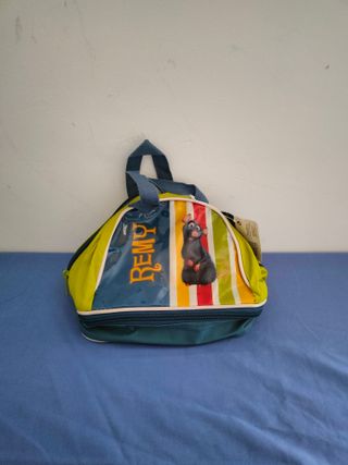 Estuche, bolso o cartera Disney del protagonista de Ratatouille cocinero Remy. De Charol y tela con asas y dos apartados superior e inferior con cremallera para meter material escolar o como bolsa de aseo, viaje. Nuevo. Con un cierre de alta calidad. Serigrafía del protagonista de la película. Nuevo, sin usar, sin estrenar, con su etiqueta. Complemento esencial e ideal para guardar en el bolso o mochila. Práctico, cómodo y funcional. Bonito estilo, diseño, color y forma. Ideal, para tener ordenado el material escolar necesario.