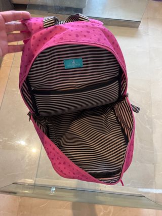Mochila escolar cómoda y espaciosa, perfecta para llevar todo lo que necesitas. Medidas aprox: 47cmx31cmx20cm - Diseño resistente y duradero. - Compartimento principal amplio. - Bolsillos adicionales para una organización óptima. - Correas ajustables para mayor comodidad. - Espalda acolchada Tiene descocido el forro en la parte superior (mirar la última foto) y también muy poquito el forro en el fondo. Por lo demás está muy bien, solo habría que limpiar las correas Bolso bolsa chica mujer colegio escuela niña rosa estampado negro morado