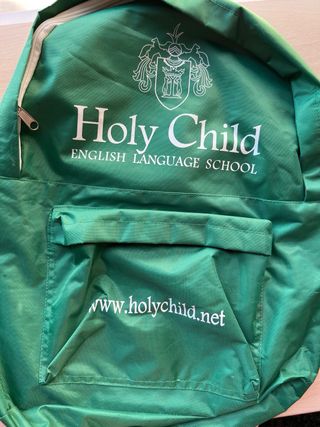 Mochila escolar verde de la escuela Holy Child English Language School. Está en buen estado. - Ideal para estudiantes. - Tiene un bolsillo frontal. - Cremallera funcional.