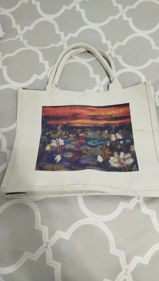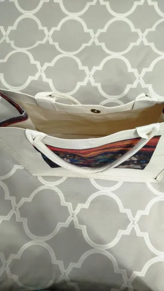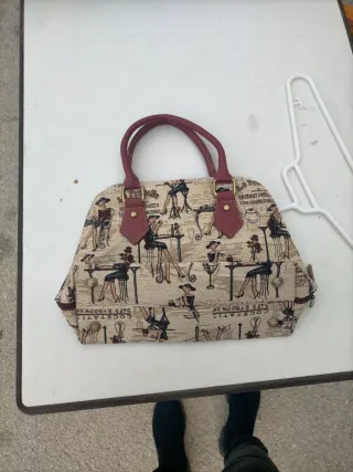 Bolso pequeño tipo tote de lona con estampado, comprado en París de la marca Robin Ruth. Medidas: 24x10x23cm - Asas del mismo tejido. - Cierre de cremallera y bolsillo interior.