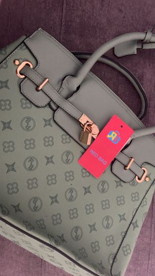 Bolso con un llamativo estampado que imita la piel de serpiente. - Diseño con cadena y candado decorativo. - Asas cómodas para llevar al hombro o en la mano.