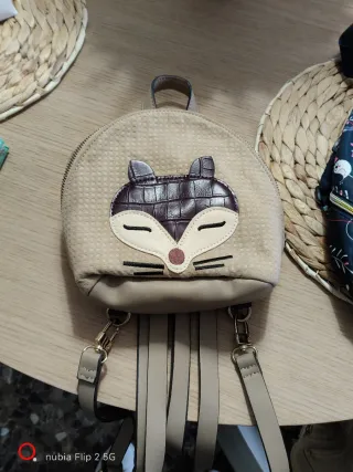 Mochila con un diseño encantador y detalles únicos. - Estampado de personaje. - Orejas decorativas. - Bolsillo frontal con cremallera. - Parche con logo. Tiene una pequeña marca que viene en las fotos, en la parte baja de la mochila pero por lo demás esta perfecta casi ni la ha usado.