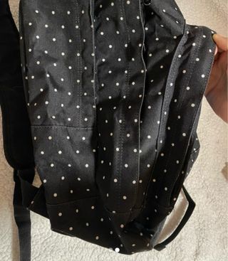 Mochila con un divertido estampado de lunares blancos sobre fondo negro. Perfecta para el día a día o para llevar tus esenciales. - Diseño con lunares blancos. - Logo de Roxy en la parte frontal.