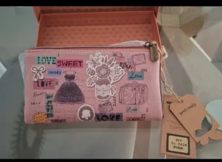 Monedero rosa con estampado Love