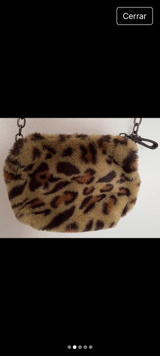 Bolso pequeño con un llamativo estampado de leopardo. Su textura peluda le da un toque único. - Material exterior: pelo sintético. - Cadena metálica para llevar al hombro.